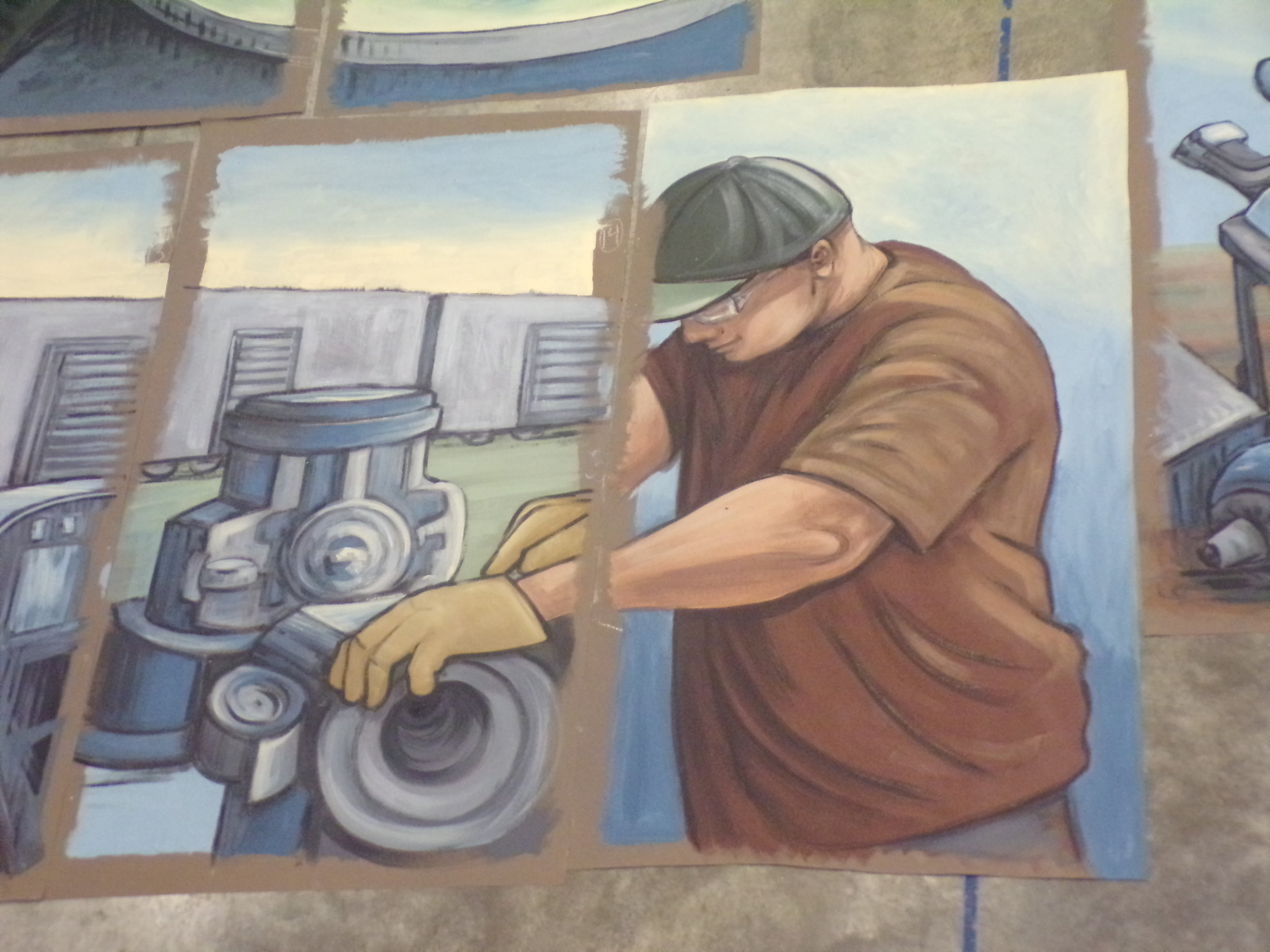 This mural is located on the exterior windows of the Madison-Kipp Corporation on the east side of Madison (201 Waubesa St, Madison, WI). These pieces are visible from the bike path next to the Goodman Community Center on Waubesa Street. The Madison East High School students, the students from the Goodman after-school programs, and the employees of Madison-Kipp Corporation participated in this project.